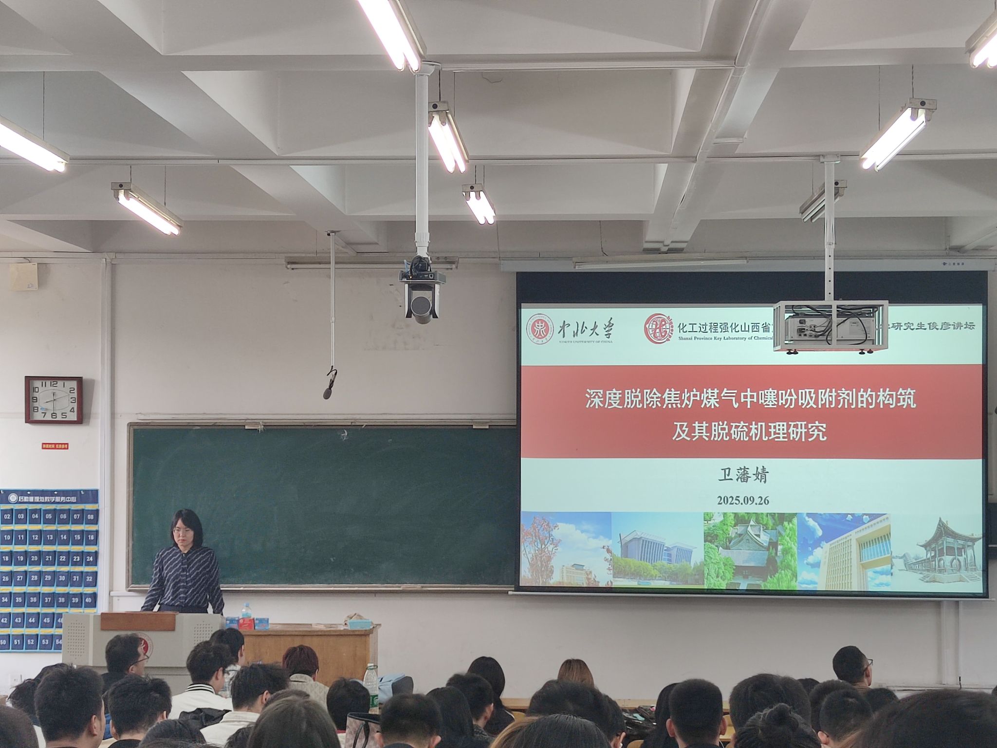 于2025年9月26日上午8:30在10204H举办了题为“深度脱除焦炉煤气中噻吩吸附剂的构筑及其脱硫机理研究”的俊彦讲坛,本次讲座邀请卫藩婧老师主讲,研分会尹京睿同学主持,吸引众多师生到场聆听。