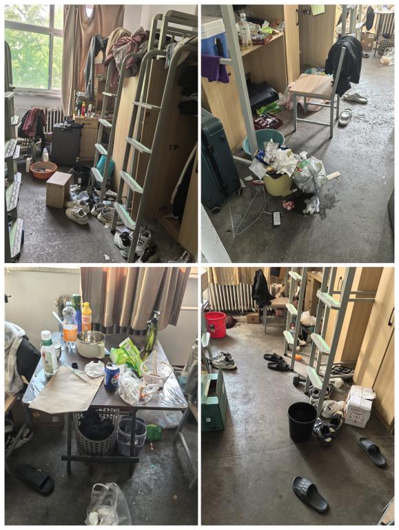 检查过程中,大部分宿舍卫生状况良好,物品摆放整齐,无违规电器使用现象。但仍有部分宿舍存在一些问题,如宿舍脏乱差、杂物堆积、垃圾未及时清理、存在卫生死角等。检查小组对相关问题进行了详细记录,并督促学生及时整改。