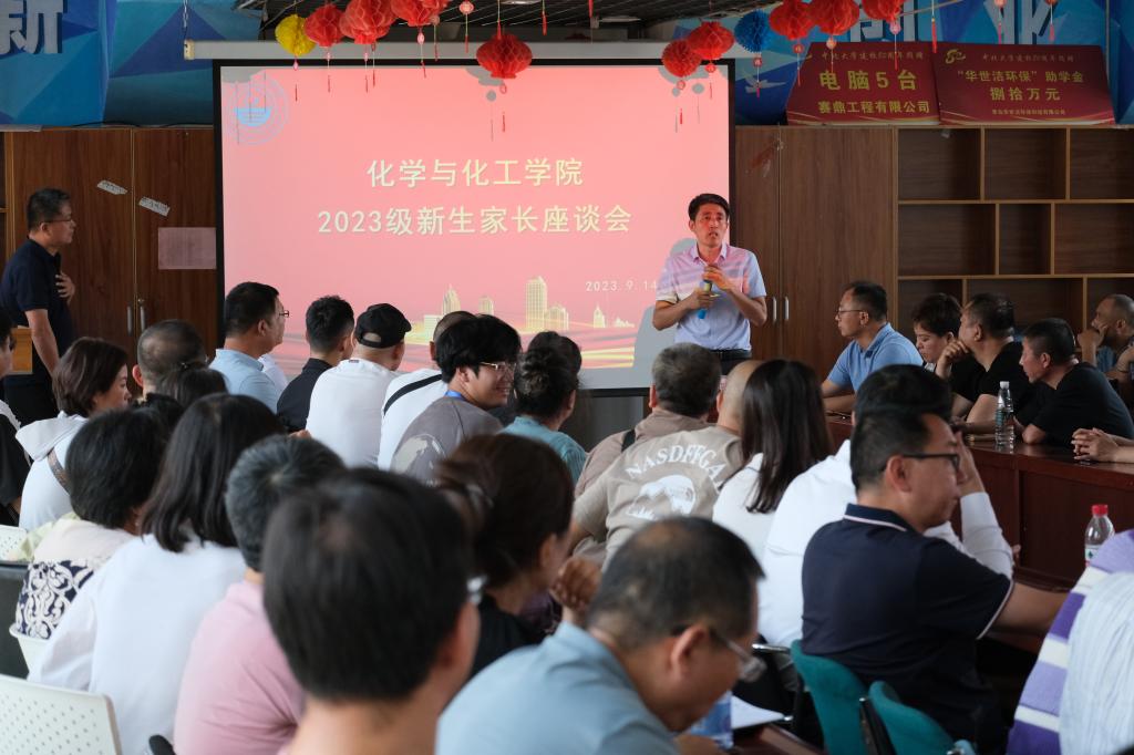 在科学楼C座七层连廊组织召开了2023级新生家长座谈会。学院党委书记吴志远、院长祁贵生、副院长王海宾、副院长焦纬洲、学生科老师、新生班主任以及部分23级新生家长参会。会议由院党委书记吴志远主持。