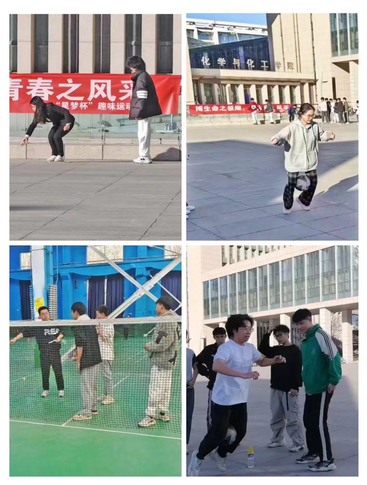 体育部于2023年11月19日下午两点半在科学楼C前空地举办“星梦杯”趣味运动大赛开幕仪式。除了此场地之外,本次活动还有东区篮球场、东区排球场、羽毛球馆,共四个场地。