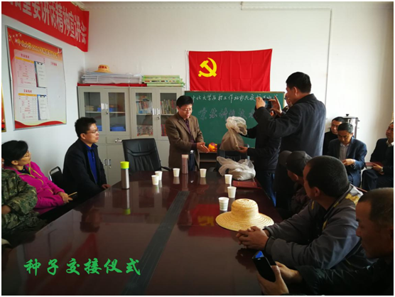 最后,廖海洪书记代表化学工程与技术学院与农民代表进行了种子交接仪式,并对结对帮扶的贫困户王向东进行了亲切慰问。