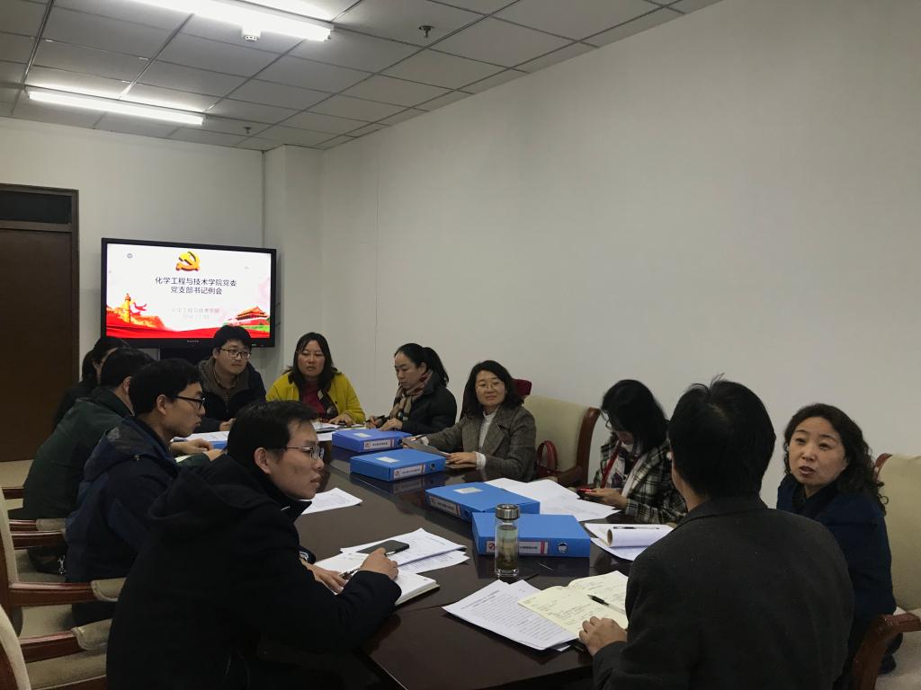 2018年12月3日,化学工程与技术学院在科学楼714召开了学院党支部书记例会,会议由廖海洪书记主持,党委副书记李云及全体党支部书记参会。