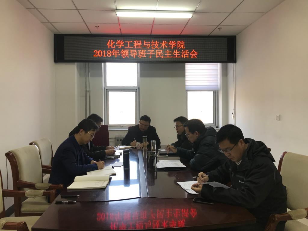 根据校党委《关于召开2018年度领导班子和党员领导干部民主生活会的通知》相关要求,2019年1月21日下午,化学工程与技术学院召开领导班子民主生活会,学校副校长赵贵哲到会指导,会议由学院党委书记廖海洪主持。