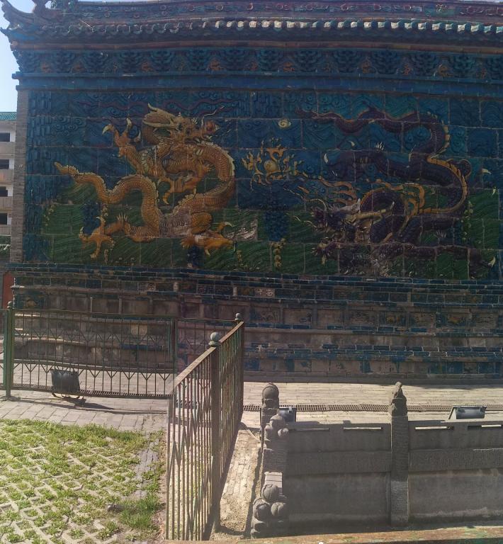 九龙壁,建于明代洪武年间,距今已经有600多年的历史,是明太祖朱元璋第十三子代王朱桂府前照壁,壁面由426块特制五彩琉璃构件拼砌而成。为探索中国传统随壁建筑文化,2019年7月15日,我们鉴黄师