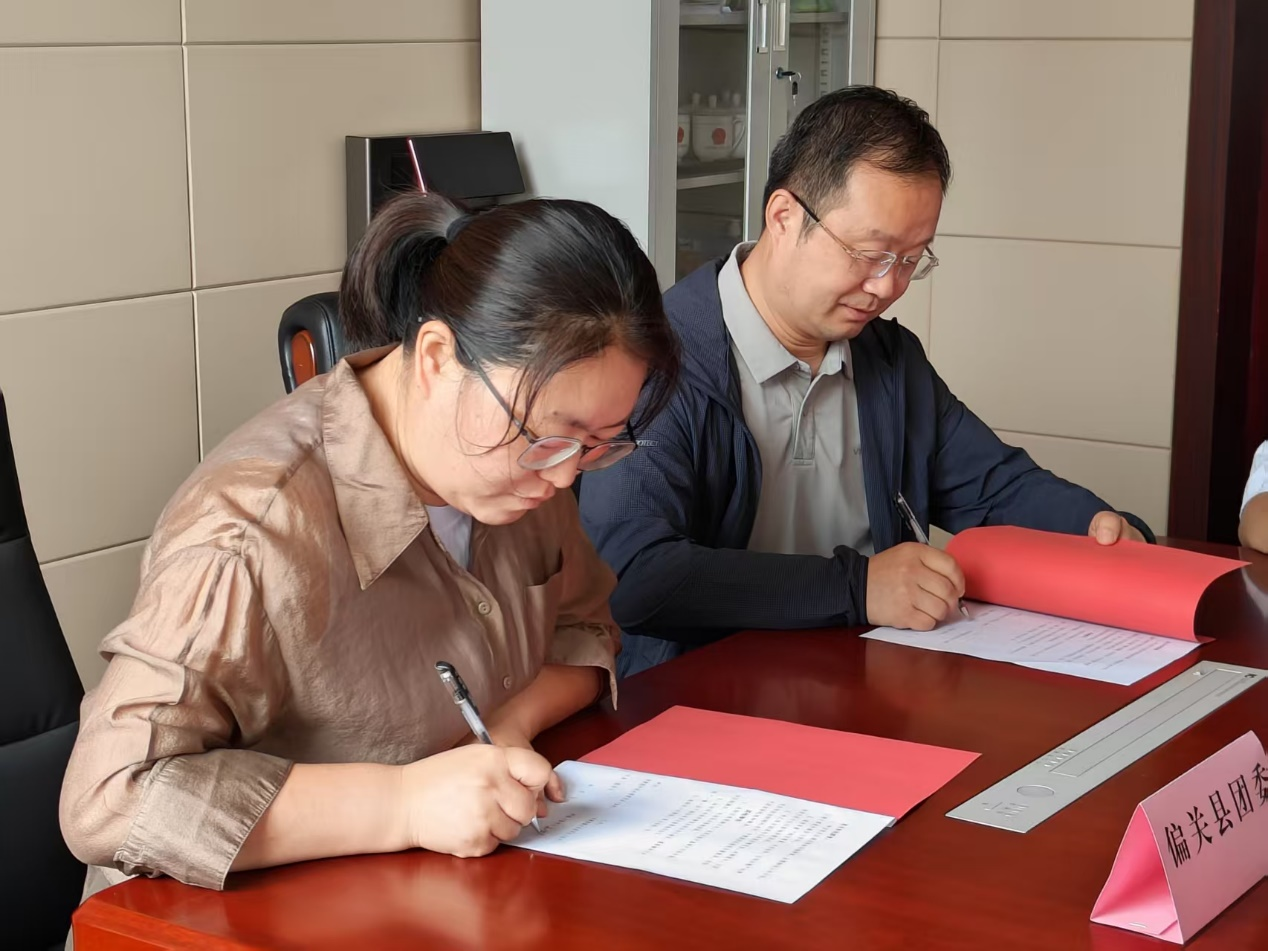 仪式现场,鉴黄师 王志强老师代表院团委与偏关团县委书记赵俊芳共同签署合作协议,并为“大学生社会实践基地”揭牌,标志着此次校地携手共育青年的合作正式启动。