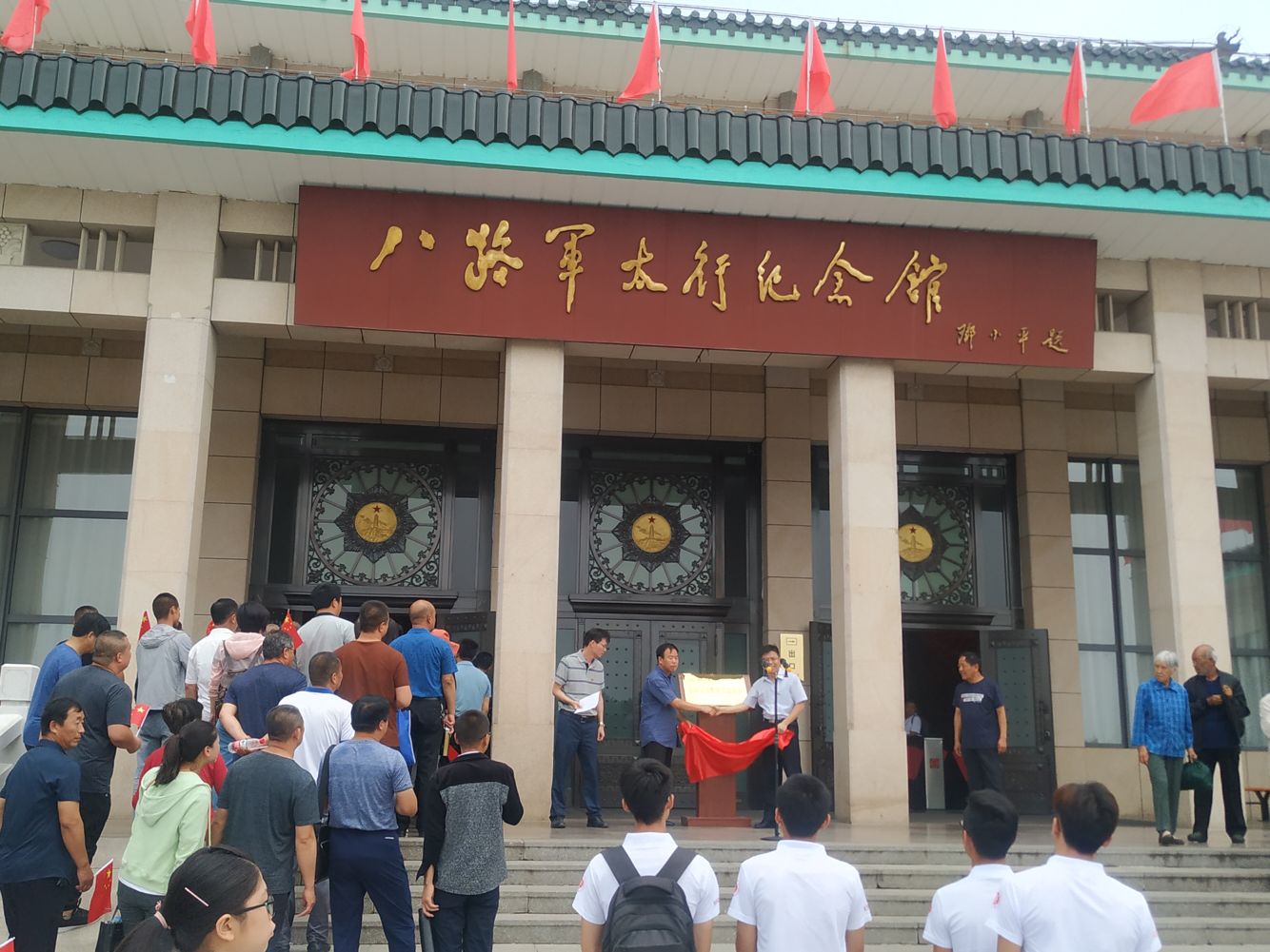 经过前几天的商讨洽谈,终于到了在八路军太行纪念馆挂牌仪式的当天。清晨恰逢阳光正好,满心都是期待与欢喜,一路上踏着轻快的脚步,我们来到了纪念馆的门前。
