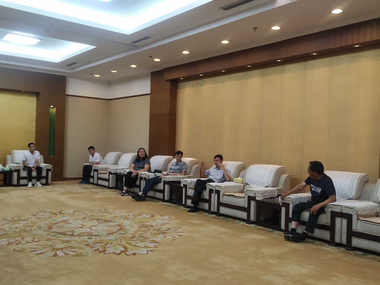 由于两位书记来得比较早,纪念馆办公室的李主任邀请我们一同前往会客厅等待。等待期间李主任与廖书记进行了一番交流,而在一旁旁听的我们通过这次机会,也了解到了一些关于太行纪念馆的、从网络上不曾了解到的事情。从李主任的讲述中,我们才知道纪念馆变成如今的规模,是自2005年胡锦涛主席来访时扩建的,那在当时是一次机遇——是纪念馆的机遇,也是山西的机遇。