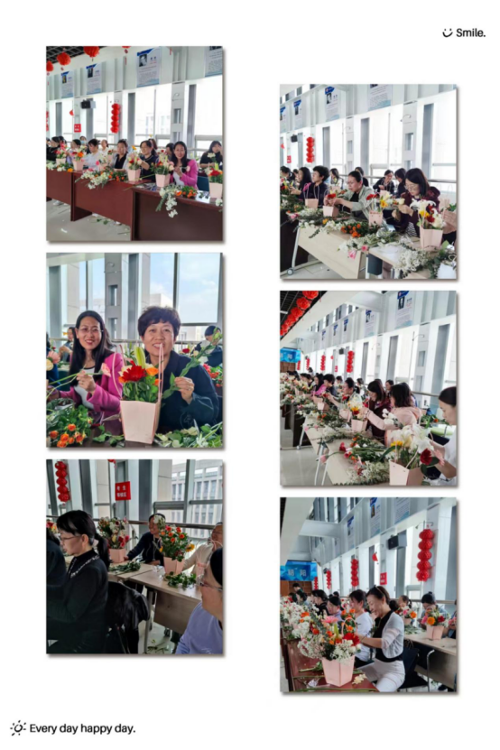 大家精心构思创作自己的作品,并不时相互交流,分享创作灵感,每位教师脸上都洋溢着幸福的微笑。在花卉的芳香和美妙中,大家充分发挥自身的创造力和想象力,制作出一件件芬芳迥异、高低有序的插花作品。