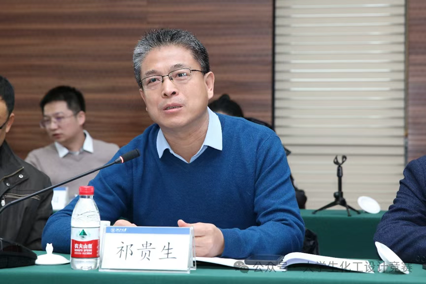 中国化工学会副秘书长胡杰、中国化工教育协会秘书长辛晓、教育部高等学校化工类专业教学指导委员会副主任委员李伯耿教授作指导性发言,中国化工教育协会唐旭华副秘书长作总结发言。竞赛委员会秘书处汇报了2024年竞赛举办情况和2023年联席会议决议执行情况,提出了若干提升竞赛质量及修订竞赛章程的建议,并介绍了《大学生化工设计能力评价标准》及其实施计划,参会代表围绕上述总结和建议进行了深入讨论。 会议期间,代表们对2025年化工设计竞赛的选题展开了激烈讨论,最终确定第十九届竞赛的选题为“二甲基亚砜的清洁生产”,并研讨了总决赛赛制、赛程、师资培训等相关问题。祁贵生院长就设计竞赛师资培训、竞赛赛制、赛程、规则等问题提出了建议。