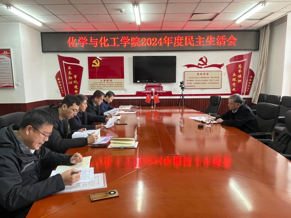 2025年2月20日下午,化学与化工学院在科学楼C座705室组织召开了2024年度党员领导干部民主生活会,会议由院党委书记吴志远主持,副校长赵贵哲莅临指导。