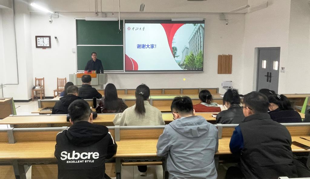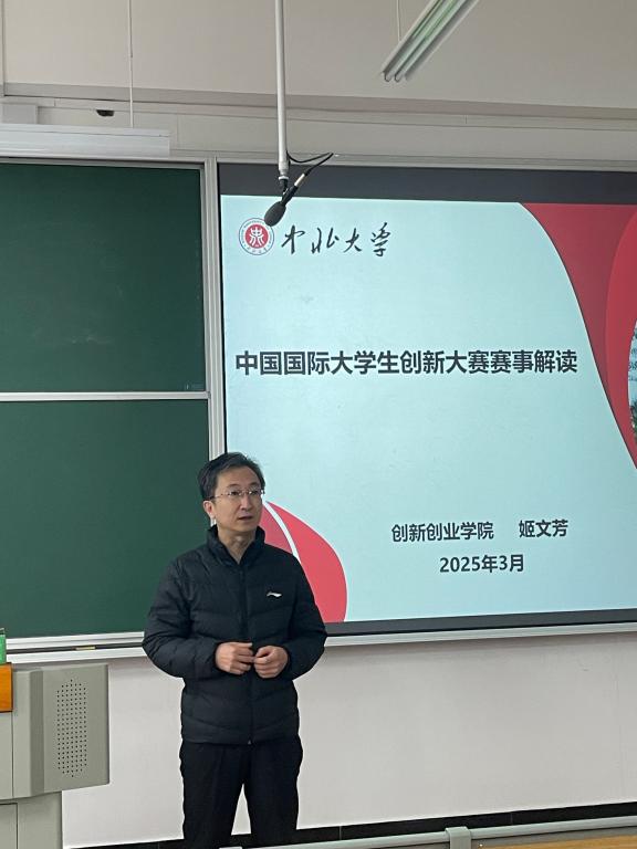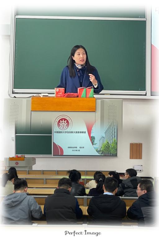在18101H教室成功举办“中国国际大学生创新大赛赛事解读”专题报告会。本次报告会由创新创业学院姬文芳老师主讲,学院教学副院长胡志勇主持,吸引了百余名师生参与。
