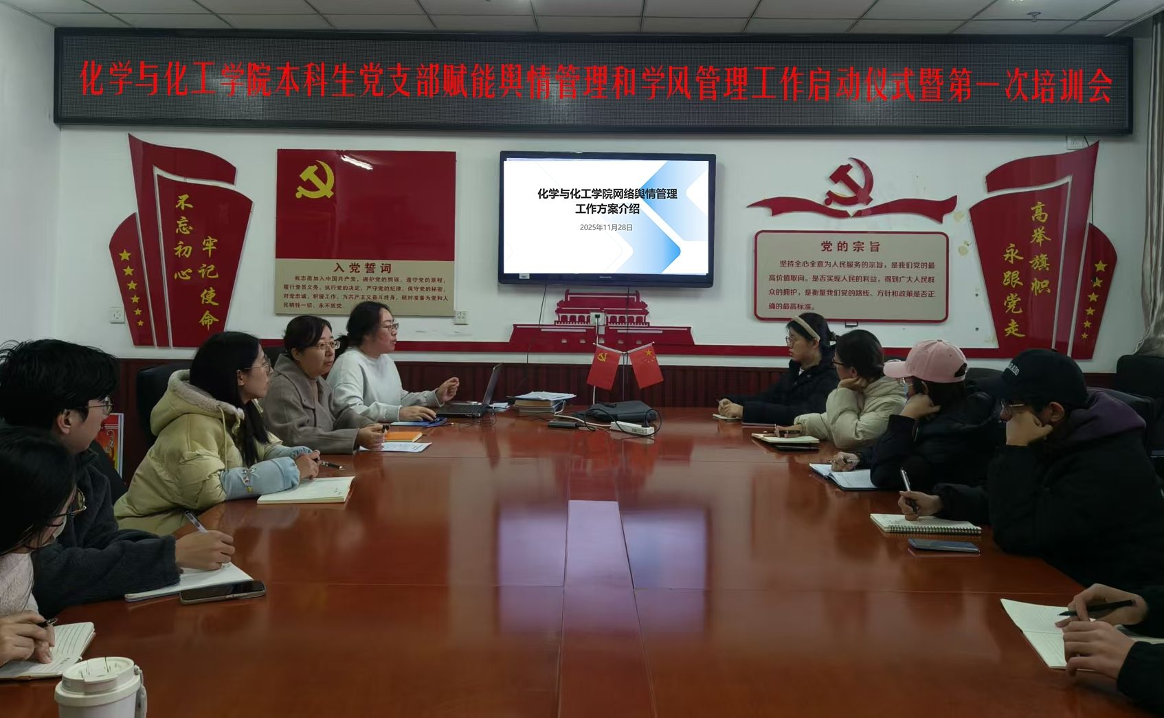 在科学楼C座705召开“本科生党支部赋能舆情管理和学风管理工作启动仪式暨第一次培训会”。学院学生科赵芸芳、李艳、秦秀峰及各本科生党支部书记、本科生党员代表参会。