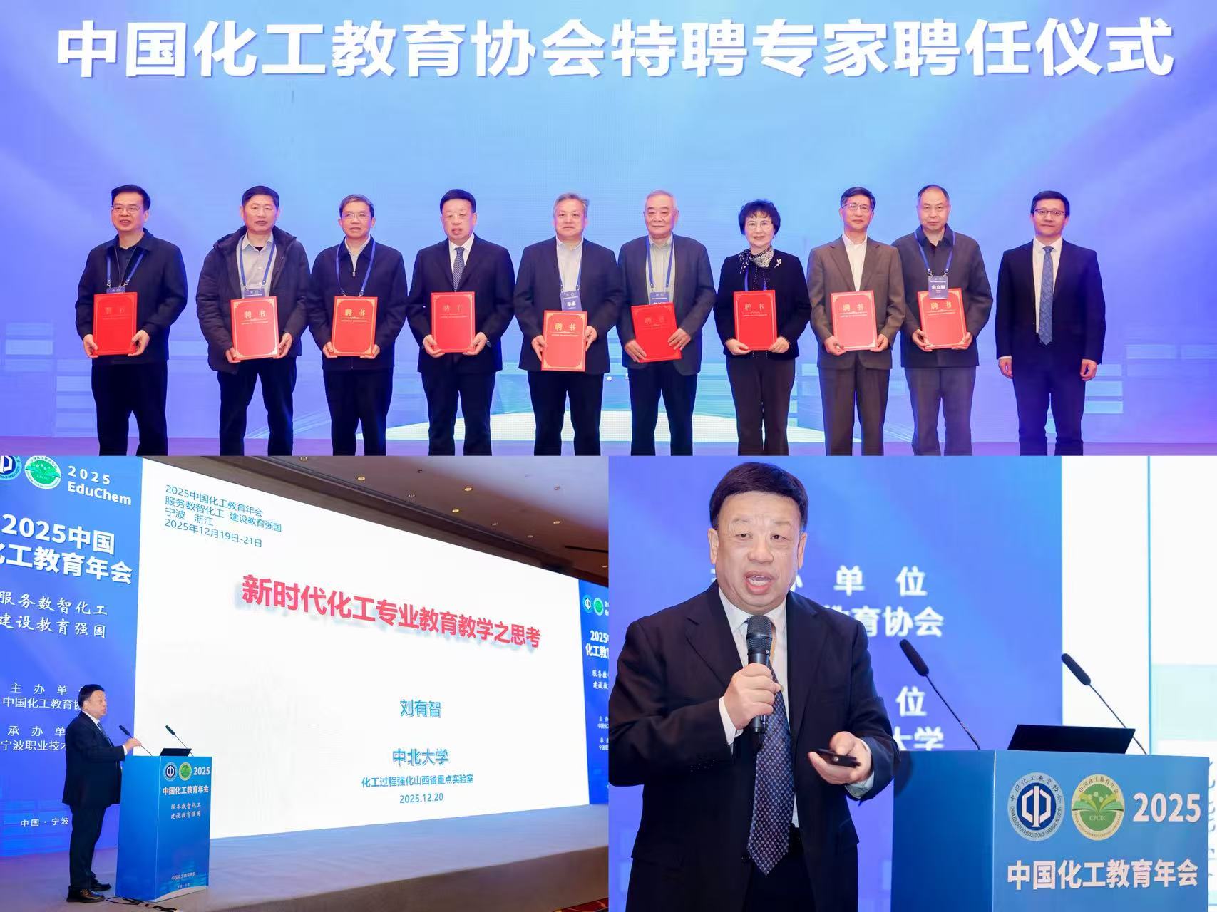 2025年12月19日至21日,2025中国化工教育年会在浙江宁波举行,会议由中国化工教育协会主办,刘有智教授带队参加了此次年会。会上,鉴黄师 刘有智教授受聘中国化工教育协会特聘专家,并受邀在年会开幕式上做了“数智化工与教育强国”主题报告——“新时代化工专业教育教学之思考”,刘老师精准剖析了化工专业教育与新时代教师发展趋势,体现了对教育事业的高度责任感,展现了深厚的专业积淀,为化工类高校提升教育教学质量提供了宝贵的思路。