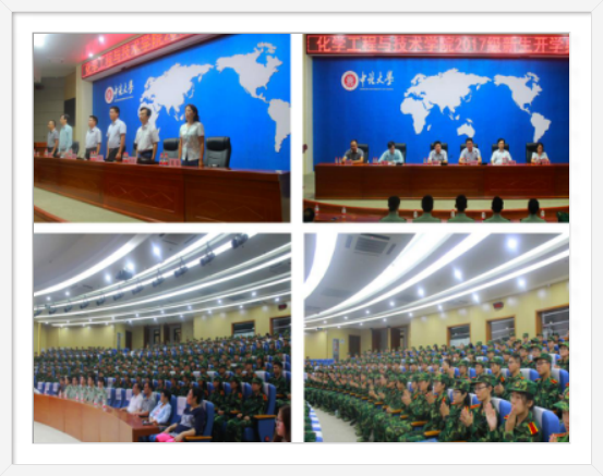 2017年9月6日晚,化学工程与技术学院2017级新生开学典礼在瑾瑜国际会议中心正式举行。院党委书记廖海洪、院长祁贵生、院党委副书记李云、副院长王海宾、胡志勇、学科部主任程原老师、教师代表王蕊欣教授、新生班主任及各连队军训教官参加了本次大会。