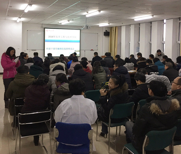 1月19日下午,化学工程与技术学院在科学楼206举行科级干部空缺岗位选拔推选会。学院领导班子及全体教职工参加了会议。