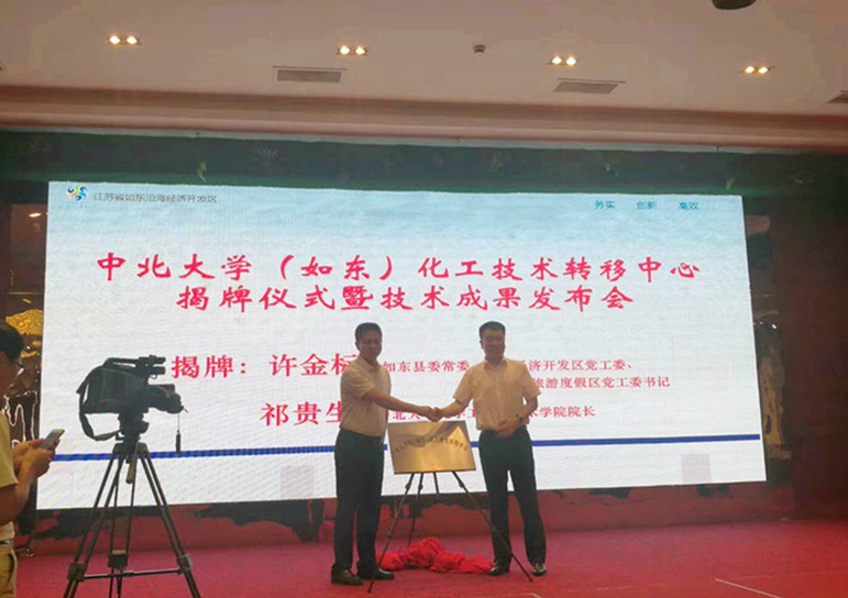 化学工程与技术学院祁贵生院长、如东沿海经济开发区党工委许金标书记共同为技术转移中心揭牌。