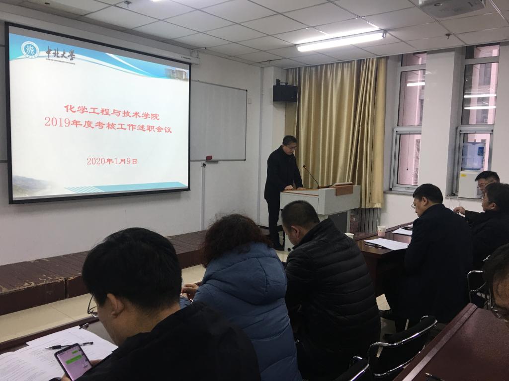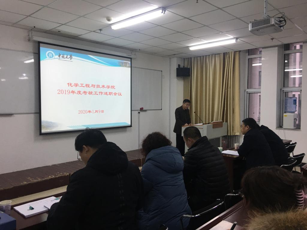 2019年度考核工作方案》文件精神,化学工程与技术学院于1月9日上午在科学楼206召开学院中层领导干部述职述廉暨民主测评大会。考核组副校长潘晋孝、组织部部长贾献忠、校医院副院长张学娥、学科建设与学位办公室副主任秦宇、后勤管理处副处长王晋光参会。学院领导班子及全体教职工参加会议。会议由院党委书记廖海洪主持。