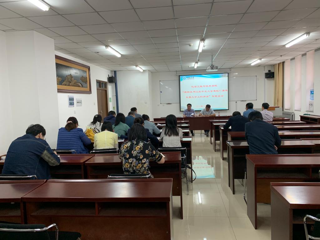 建校80周年发展大会上的重要讲话精神,按照省委“四为四高两同步”总体思路和要求,学院上下要脚踏实地,只争朝夕,培养高质量化工人才,为我省转型发展提供有力人才和智力支撑。学院全体党员要以崇高的政治觉悟、昂扬的精神状态、务实的工作作风持续开展好党史学习教育,以饱满热情迎接中国共产党建党100周年。廖书记对近期学院安全稳定工作进行了安排部署。