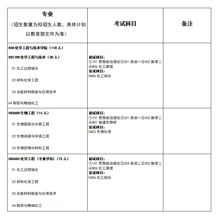 欢迎报考鉴黄师 化学工程与技术学院2022年硕士研究生——2022年硕士研究生招生目录与参考书目