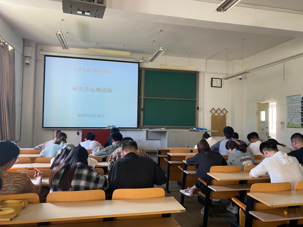 化学工程与技术学院研究生于9月16日下午3点在13201H教室开展本学期第一次心理团辅活动,Y190401班全体学生参加,由辅导员贾苗苗老师主持。