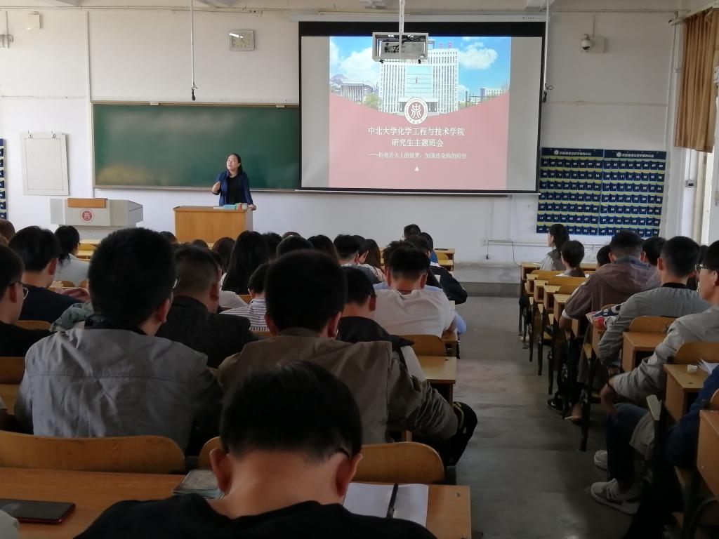在10304H召开了研究生主题班会。本次班会由辅导员贾苗苗老师主持,研究生班主任王艳红老师、马忠平老师以及化学工程与技术学院全体在校研究生参加了此次班会。