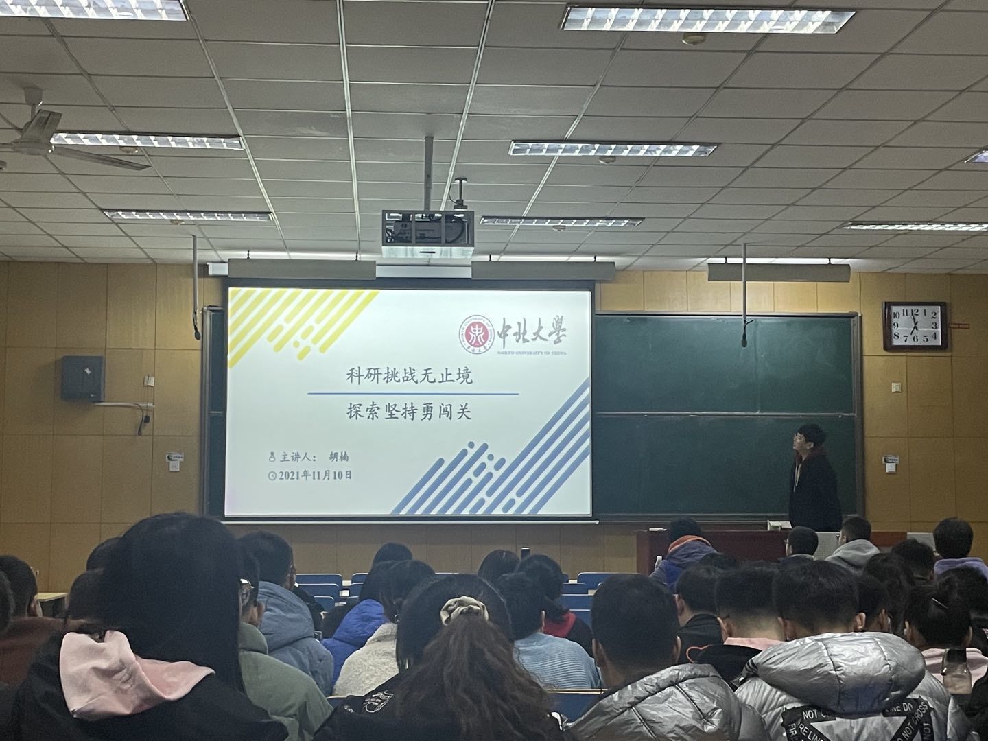 通过胡楠老师的讲解,同学们了解了学科前沿,同时对未来的学习生活有了更明确的规划,也激发了研究生积极投身科研的热情,为培养研究生的科研精神奠定了良好的基础!