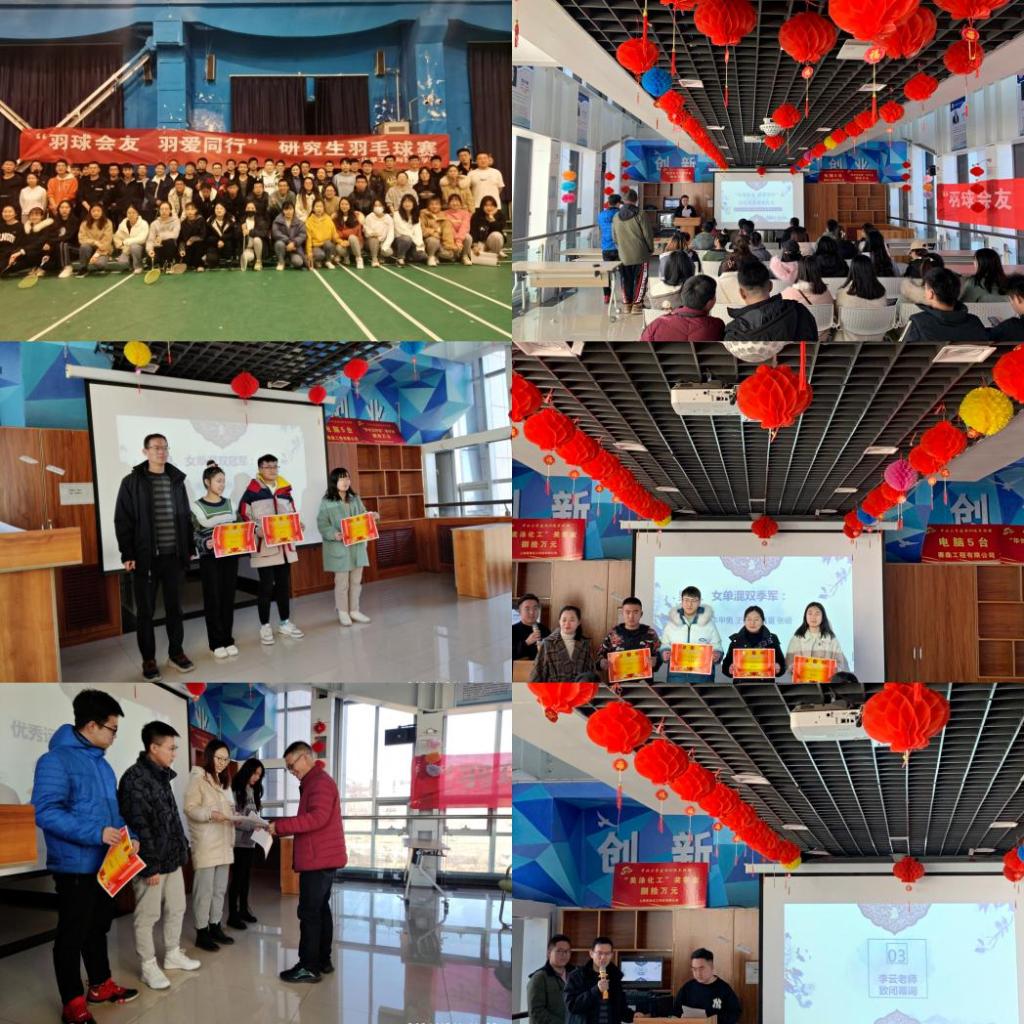 瑞雪翩跹,春城素裹。为丰富研究生们的业余文化生活,培养学生团结进取、勇于拼搏的优良品质,由化学工程与技术学院研分会举办的羽毛球赛于11月15日下午在羽毛球馆正式拉开帷幕。同学们积极报名,踊跃参加,尽情享受运动带来的乐趣。