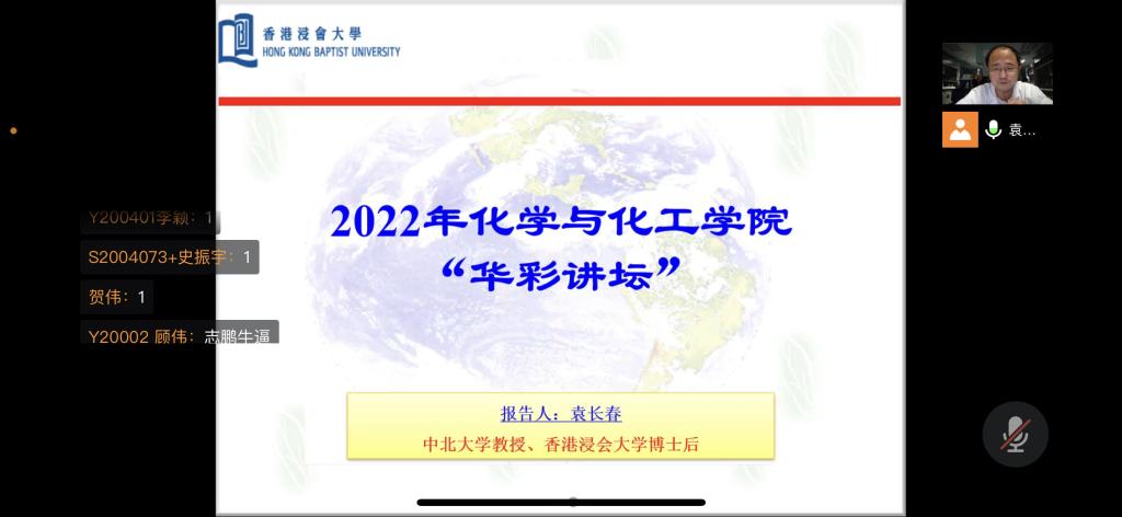为了加强研究生学术交流,进一步提高研究生培养质量,2022年10月4日,晚上8:00,通过腾讯会议,学院邀请了现在香港浸会大学进行“香江学者”计划项目的袁长春教授,为研究生们带来了主题为“在香港做研究的这两年感想”的华彩讲坛,300多名硕博研究生参会。