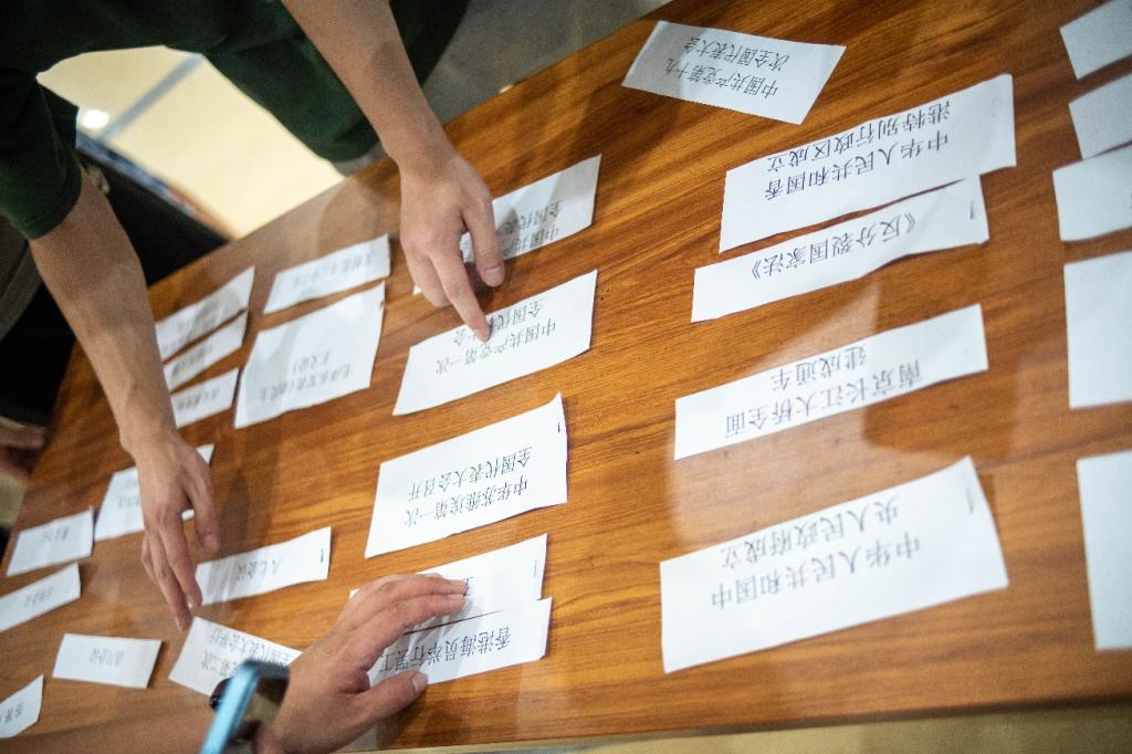 在宣布活动开始后,大家一同观看了红色文化宣传片《一声一世》,该片选取中共一大、二大、四大纪念馆和龙华烈士陵园作为拍摄场景,通过新老党员代表重温党章中“永不叛党”的入党誓词,展示党员对党的无比忠诚和对党章、对入党誓言的恪守不渝。随后主持人王鹏飞同学介绍了本次设有“光辉历程、南泥湾丰收、支援前线、精准投掷、猜猜这是什么字”等5个团体项目,“光辉历程”选取了建党102年内20件大事件,按时间线排序,系统回顾了党的百年辉煌和伟大历程中的不易与艰辛;“猜猜这是什么字”以党的二十大精神内容为主题,提炼关键字,通过猜字游戏,了解大会精神,让学生更好地理解社会发展方向和与自身息息相关的民生规划等。通过简单轻松的小游戏,全方面考验了大家的团队凝聚力、逻辑思维能力、党的知识学习情况等。赛场上,氛围紧张热烈、趣味十足,选手们发扬团结协作、互帮互助的精神,认真比拼、全力以赴。