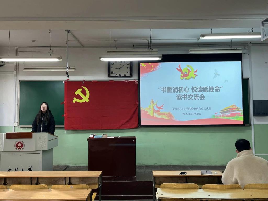 硕士研究生党支部于11月13日——12月13日举办主题为“书香润初心 悦读砥使命”的读书交流会,阅读《为了初心和使命——中国共产党一路走来的故事》及《为了可爱的中国——党员知识分子的初心与使命》两本书籍,支部每周制定学习计划,由六个读书小组根据学习内容每周带头学,已完成六期学习;支部于2023年11月24日上午9:30在01207H教室开展了一次集体学习,支部全体党员参会。