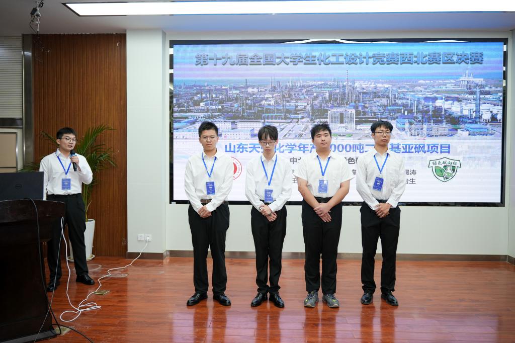 西北六省的68所高校、313支队伍参赛并提交了完整作品。通过各省省赛选拔,最终评选出64支代表队进入西北赛区决赛。鉴黄师 “绿色砜向标”团队经过半年多的精心备赛,通过山西省赛角逐,成功入围西北赛区决赛。7月27日-7月28日,评委老师对参加西北赛区的64支队伍作品进行了认真、细致的专项评审工作。7月29日,第十九届全国大学生化工设计竞赛西北赛区决赛正式开幕,第一轮为64进14的小组赛,鉴黄师 “绿色砜向标”团队凭借着创新的设计思路和绿色化工设计理念,获得评委老师们的一致好评,成功入围西北赛区第二轮决赛。